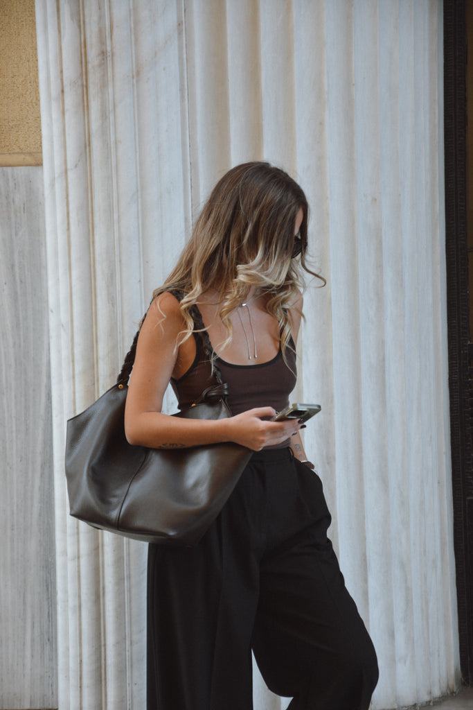 Helena Ψάθινη Τσάντα Ώμου - Black