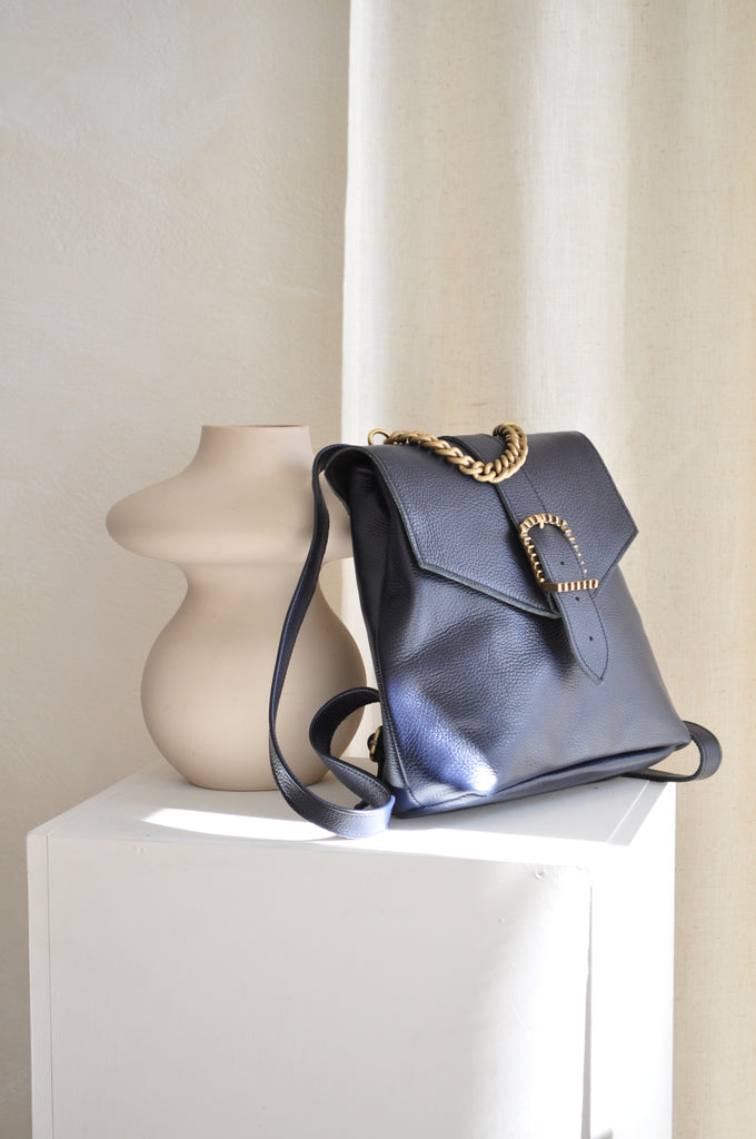 Ivy Δερμάτινo Σακίδιο Πλάτης - Dark Blue
