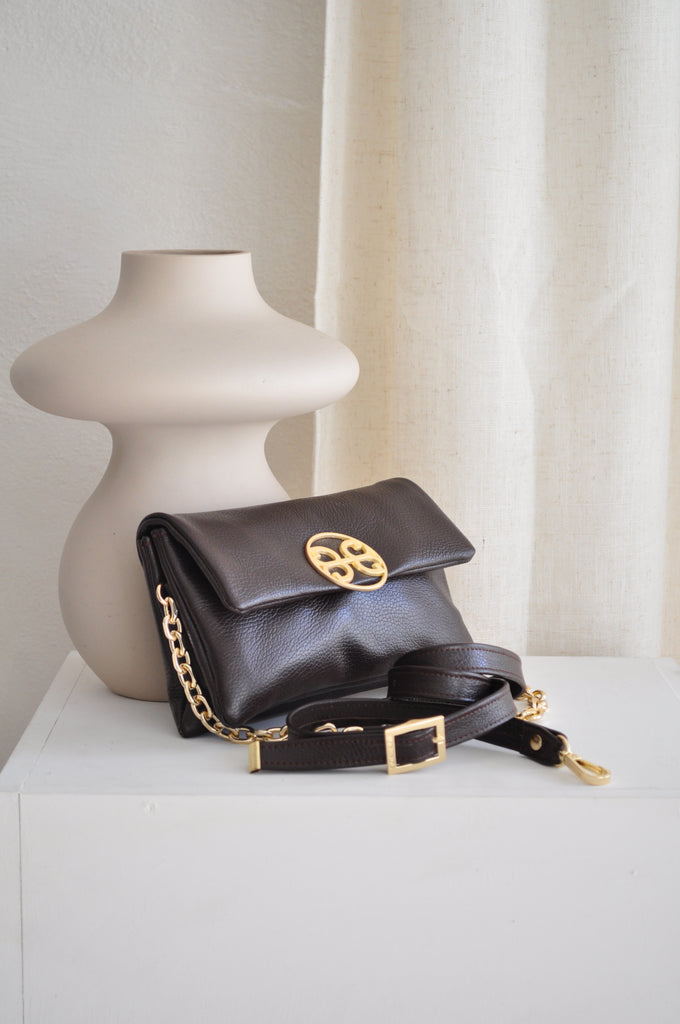 Clelia Mini Δερμάτινη Τσάντα Ώμου - Dark Brown