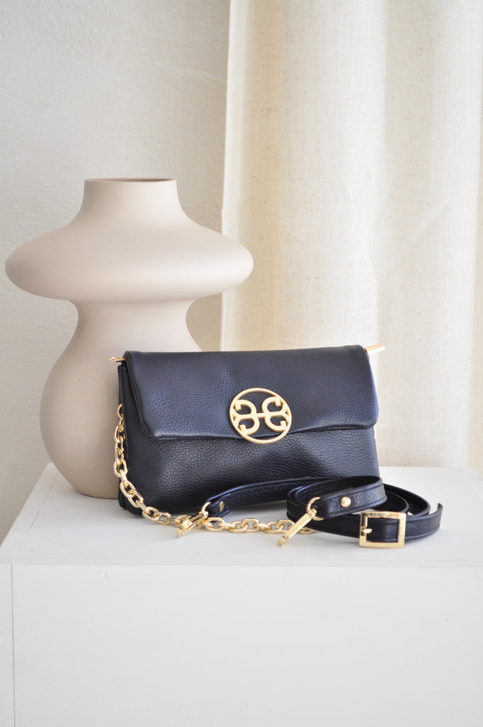 Clelia Mini Δερμάτινη Τσάντα Ώμου - Black