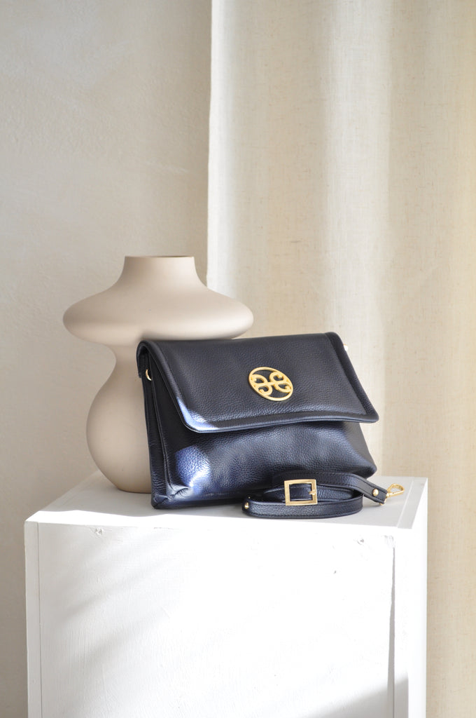 Clelia Large Δερμάτινη Τσάντα Ώμου - Dark Blue