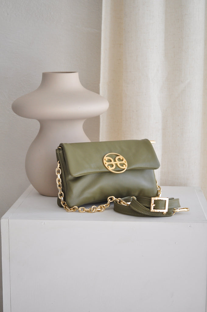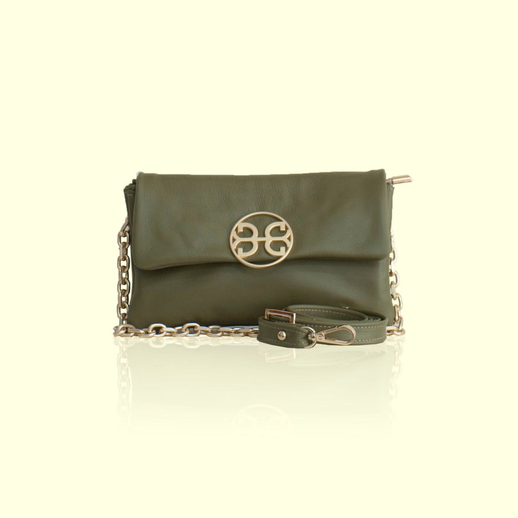 Clelia Mini Δερμάτινη Τσάντα Ώμου - Olive Green