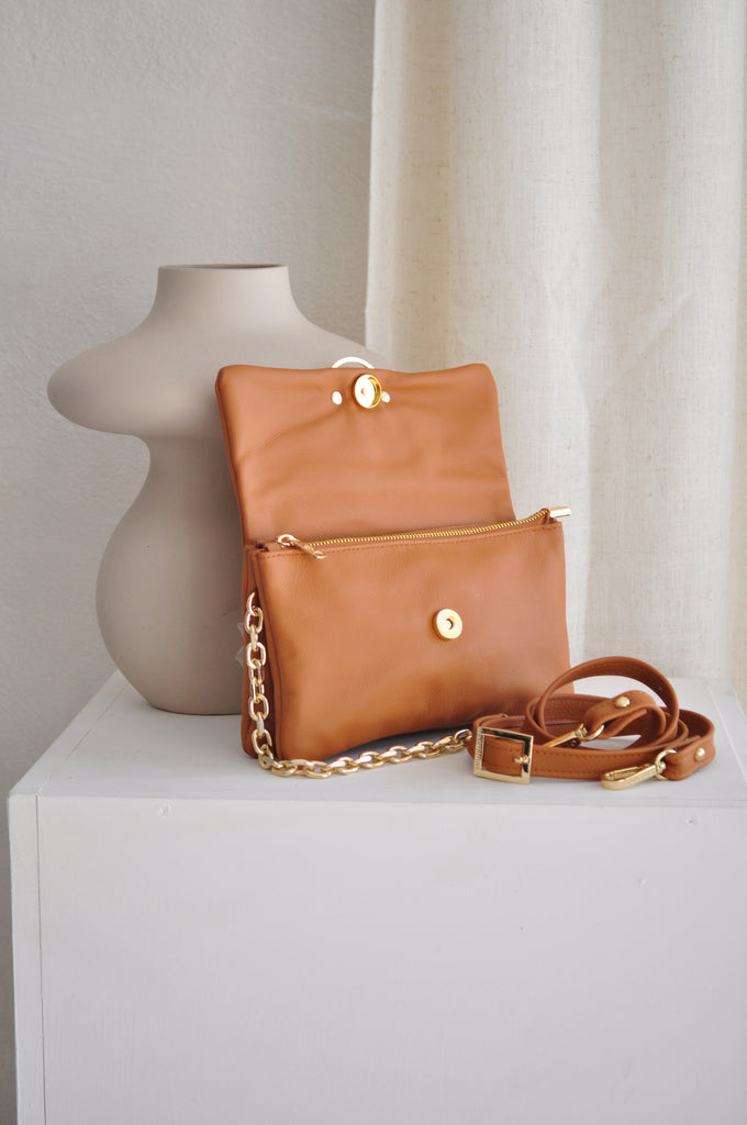 Clelia Mini Δερμάτινη Τσάντα Ώμου - Tabac
