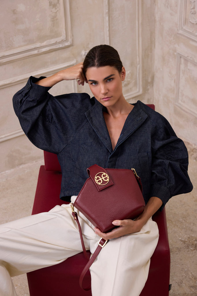 Emily 30 Δερμάτινη Τσάντα Χειρός - Cherry Red
