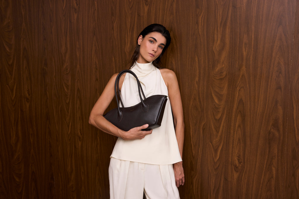 Bisou Small Δερμάτινη Τσάντα Χειρός - Dark Brown
