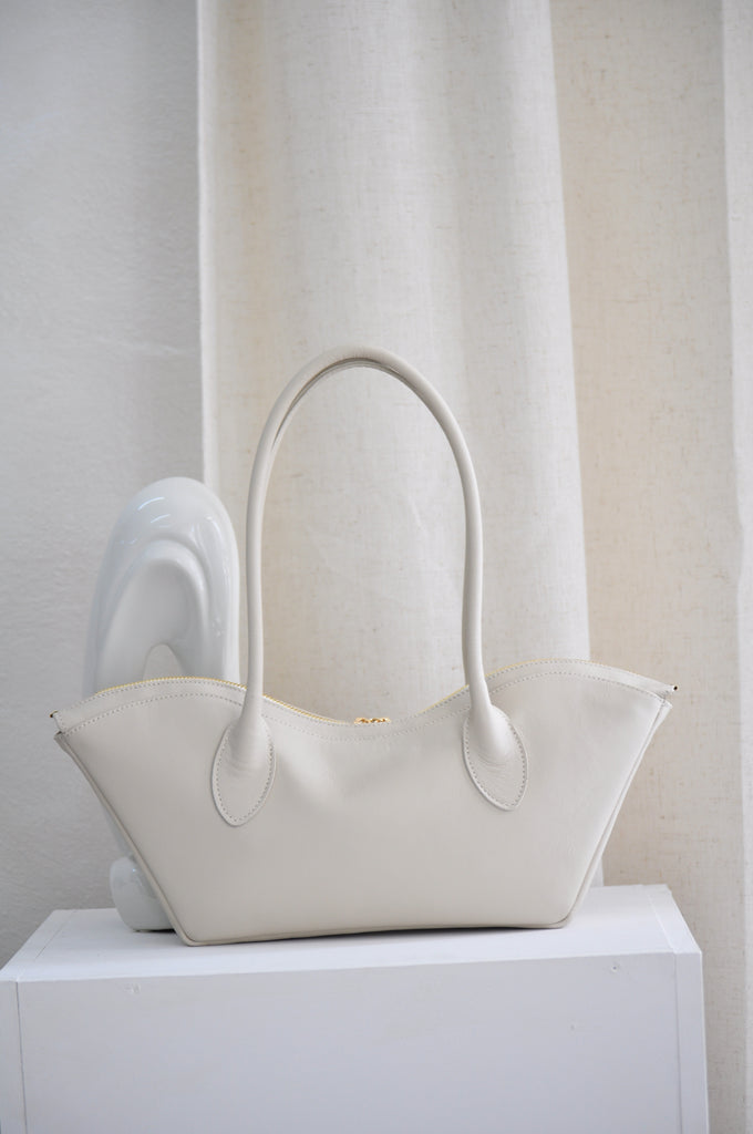 Bisou Small Δερμάτινη Τσάντα Χειρός - Ivory