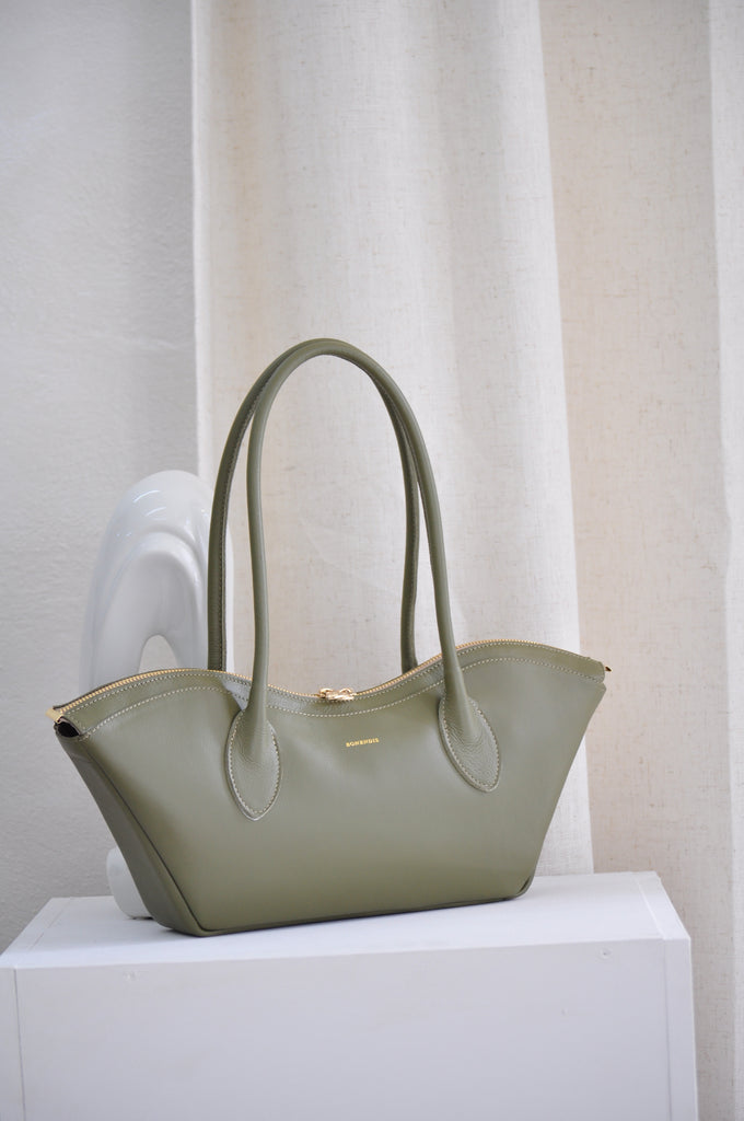 Bisou Small Δερμάτινη Τσάντα Χειρός - Olive Green