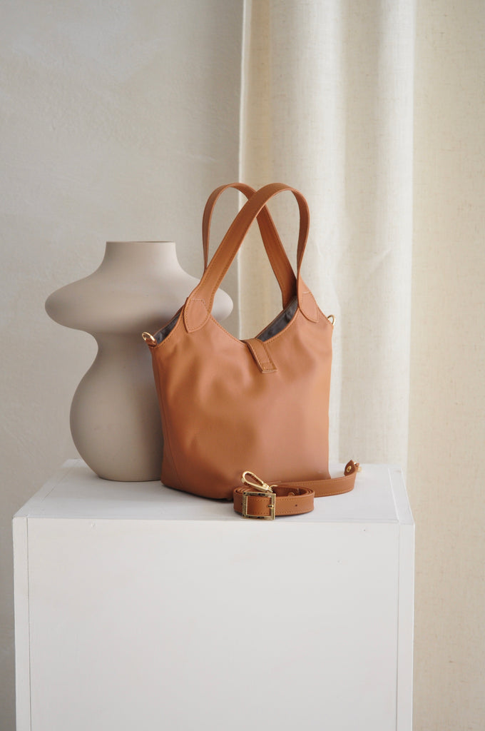 Bucket Δερμάτινη Τσάντα Χειρός - Tabac