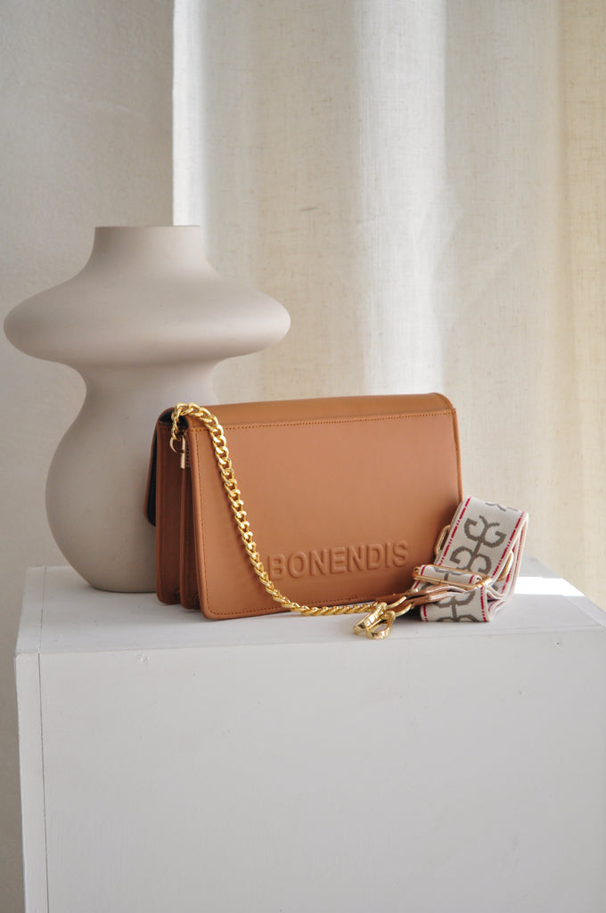 Η δερμάτινη τσάντα ώμου LIZZY είναι ένα statement κομμάτι, μοναδικό για κάθε γκαρνταρόμπα! Αυτό το stylish μοντέλο θα γίνει αναπόσπαστο κομμάτι της καθημερινότητας σου, αφού μπορεί να φορεθεί για casual chic outfits με τον χαρακτηριστικό Logo λουράκι και για βραδινές εμφανίσεις μπορεί να κρατηθεί μόνο από την μεταλλική αλυσίδα. Έχει εσωτερικό χώρισμα και δυο θήκες για οργανώνετε τα προσωπικά σας αντικείμενα. Στο πίσω μέρος υπάρχει το χαρακτηριστικό ανάγλυφο logo BONENDIS.