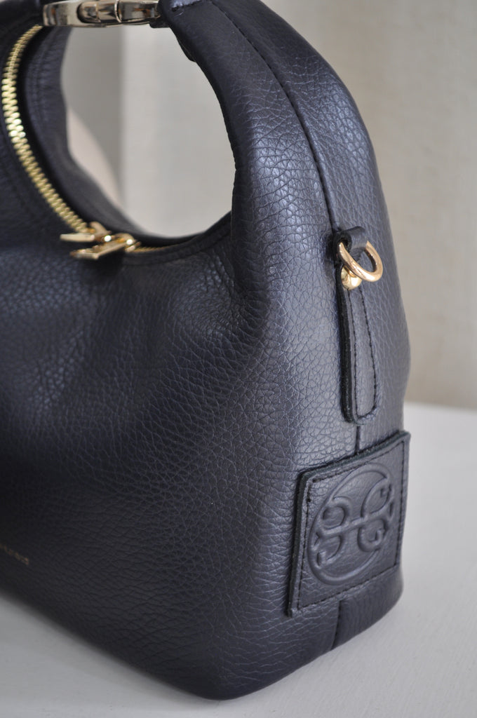 Είναι ένα αληθινό δερμάτινο κόσμημα. Μικροκαμωμένη, κομψή, είναι διακοσμημένη με όμορφες λεπτομέρειες και μια χρυσή αγκράφα που στεφανώνει αυτή την υπέροχη μαλακή τσάντα χειρός. Συνδυάζεται με δερμάτινο λουράκι για να μπορεί να φορεθεί ως χιαστί τσάντα. Ένα κομψό αξεσουάρ σχεδιασμένο για να αναδεικνύει το στυλ σας με κομψότητα σε κάθε περίσταση.