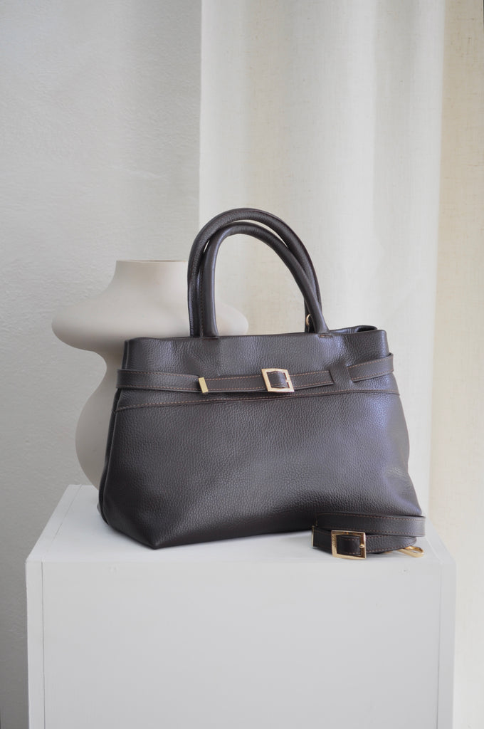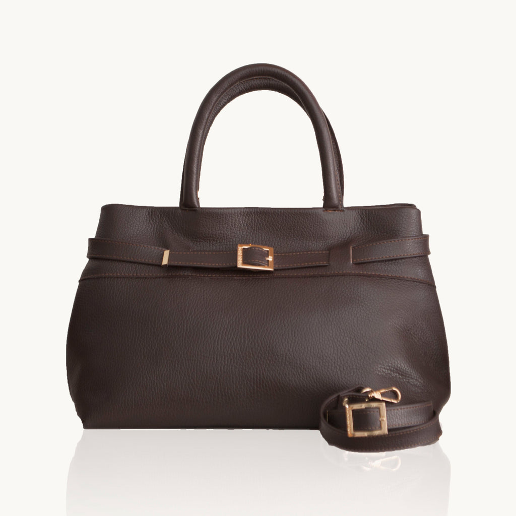 Η δερμάτινη τσάντα Emily διαθέτει έναν εκλεπτυσμένο και αριστοκρατικό σχεδιασμό που ενσαρκώνει τη διαχρονική θηλυκότητα. Κατασκευασμένη από δέρμα υψηλής ποιότητας και σατινέ αδιάβροχο ύφασμα,, αυτή η κομψή και ευρύχωρη τσάντα διαθέτει διπλά χεράκια στο επάνω μέρος, καθιστώντας την το τέλειο αξεσουάρ για καθημερινή χρήση με μια πινελιά εκλεπτυσμένου στυλ και σύγχρονης αισθητικής.