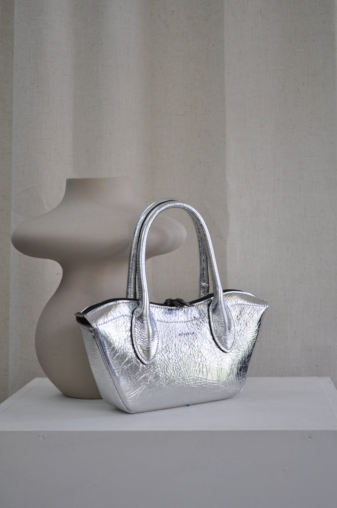 Bisou Mini Δερμάτινη Τσάντα - Silver