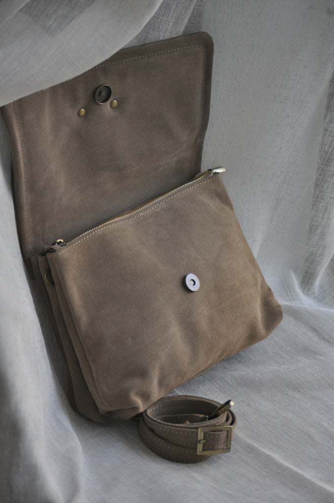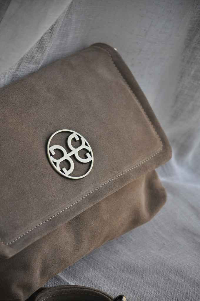 Clelia Large Suede Δερμάτινη Τσάντα Ώμου - Mocca