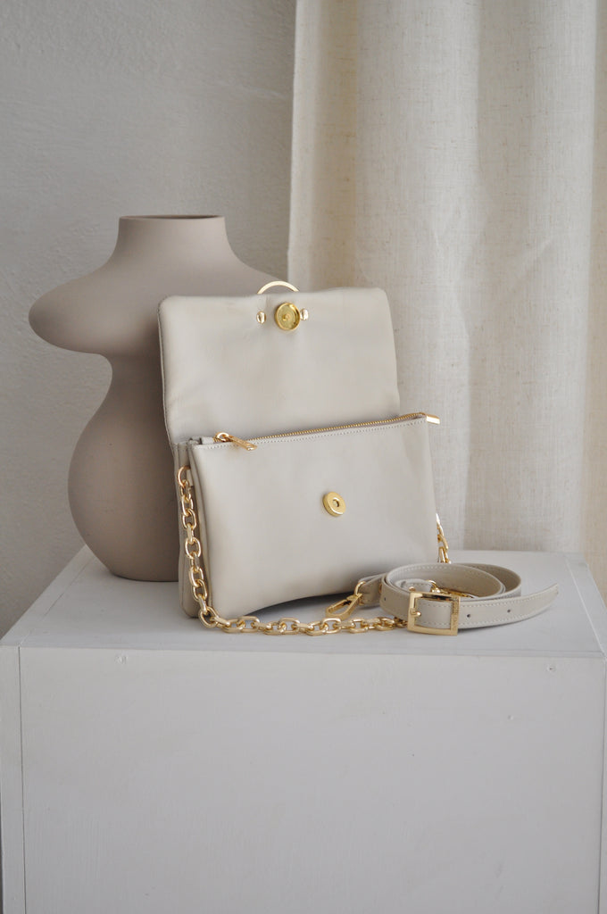 Clelia Mini Δερμάτινη Τσάντα Ώμου - Ivory
