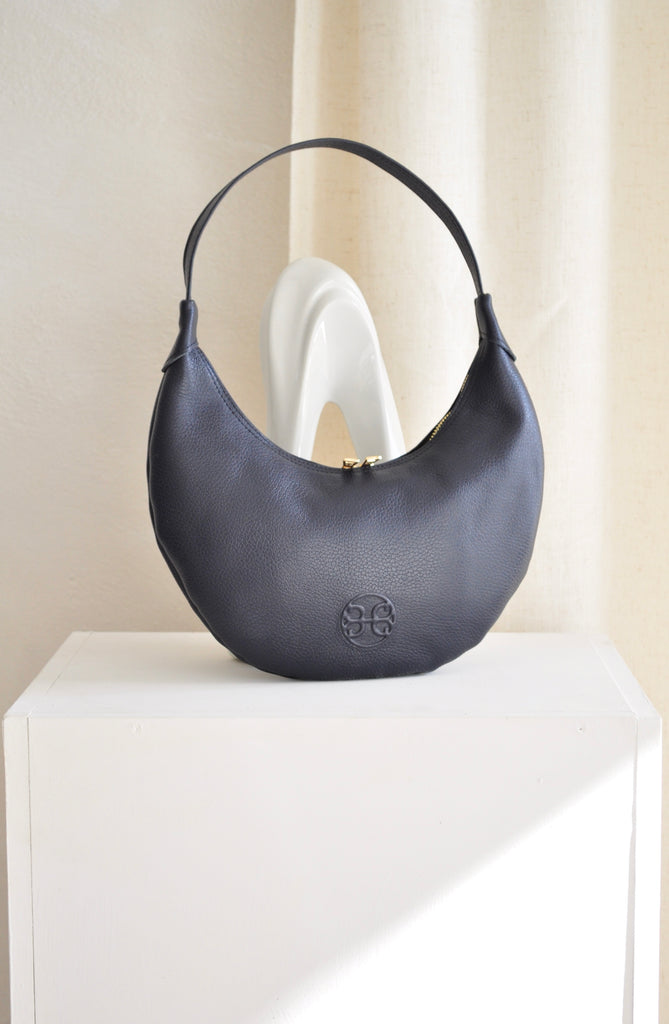 Ophelia Small Δερμάτινη Τσάντα Ώμου - Dark Blue
