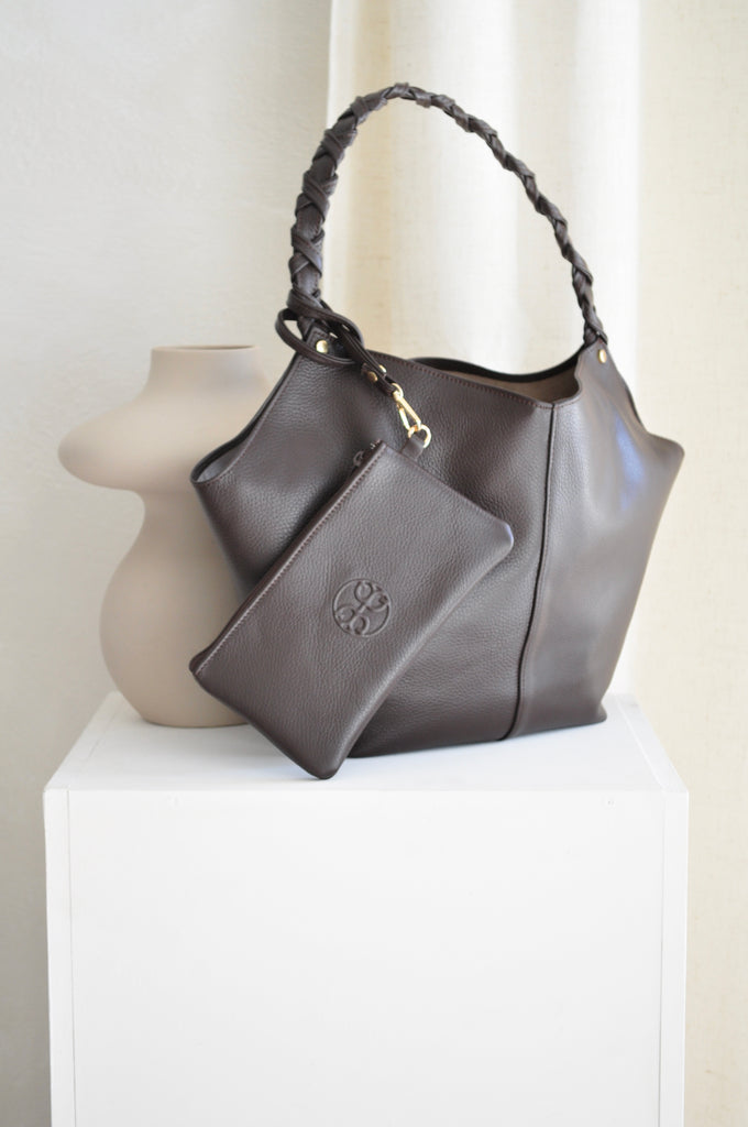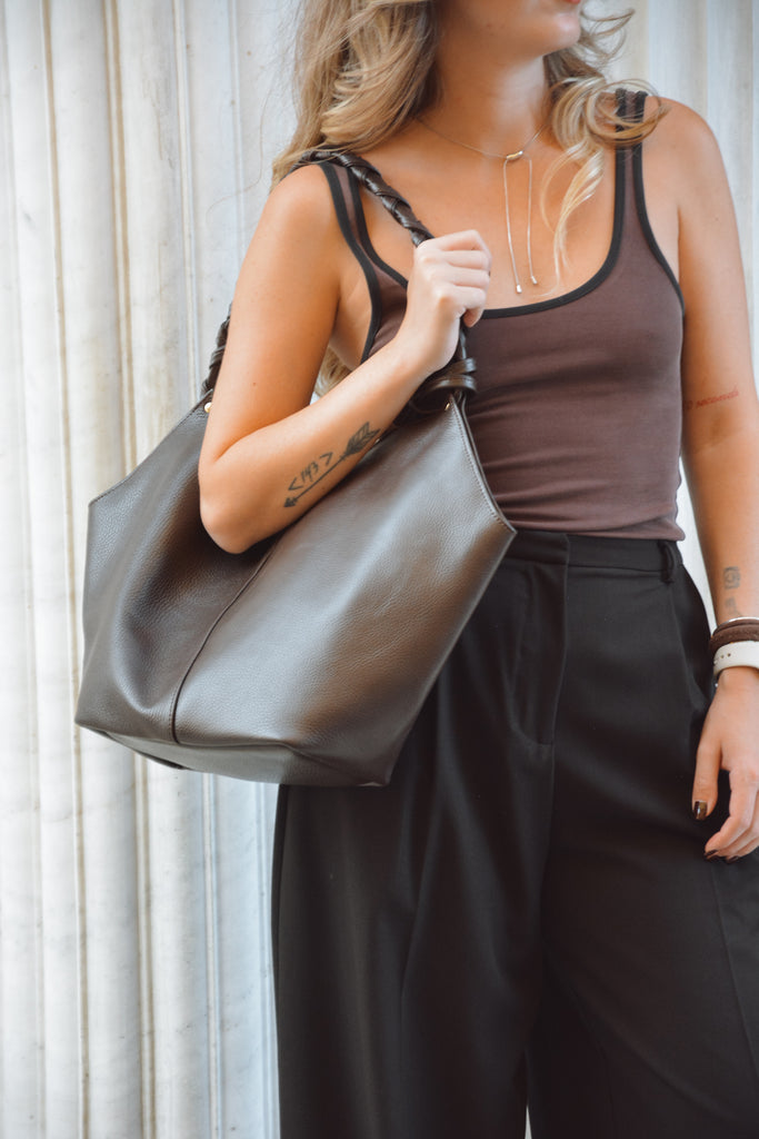 Αναβαθμίστε το στυλ σας με την τσάντα HELENA shopper Bag, σχεδιασμένη για κομψά ρούχα και λειτουργικότητα, αυτό το εκλεπτυσμένο αξεσουάρ ενσαρκώνει την κομψότητα και την πρακτικότητα. Οργανώστε με ευκολία, ενώ παράλληλα κάνετε μια τολμηρή δήλωση μόδας. Ολοκληρώνεται με ένα βολικό μικρό πουγκί που είναι προσαρτημένο στο εσωτερικό της. Κατασκευασμένη με δέρμα υψηλής ποιότητας και κομψό σχεδιασμό, αποτελεί την επιτομή της διακριτικής πολυτέλειας.