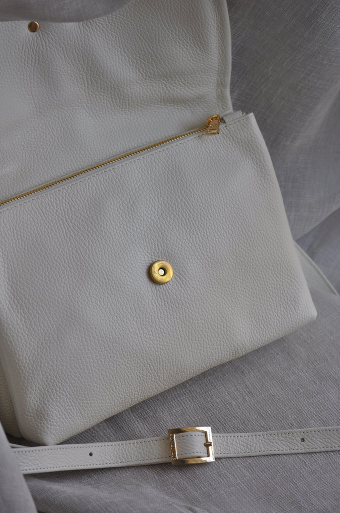 Clelia Large Δερμάτινη Τσάντα Ώμου - Cream