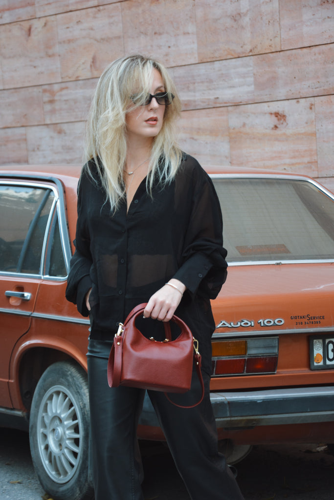 αυτή την υπέροχη μαλακή τσάντα χειρός. Συνδυάζεται με δερμάτινο λουράκι για να