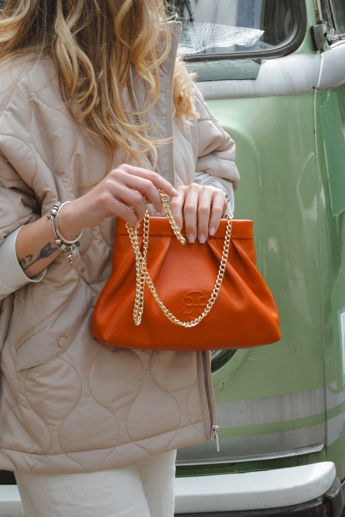 Σας παρουσιάζουμε το Kiss Pouch - ένα κομψό και εκλεπτυσμένο αξεσουάρ που έχει σχεδιαστεί για να συμπληρώνει την επίσημη ενδυμασία σας με διακριτική κομψότητα. Φορέστε το με αυτοπεποίθηση, είτε στο χέρι ως μινιμαλιστικό συμπλέκτη είτε κάτω από τη μασχάλη σας για μια πιο στιλάτη εμφάνιση. Αναβαθμίστε την επίσημη εμφάνισή σας με ένα αξεσουάρ που συνδυάζει αβίαστα την πρακτικότητα με την εκλεπτυσμένη αισθητική.
