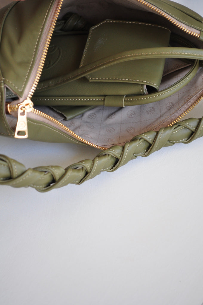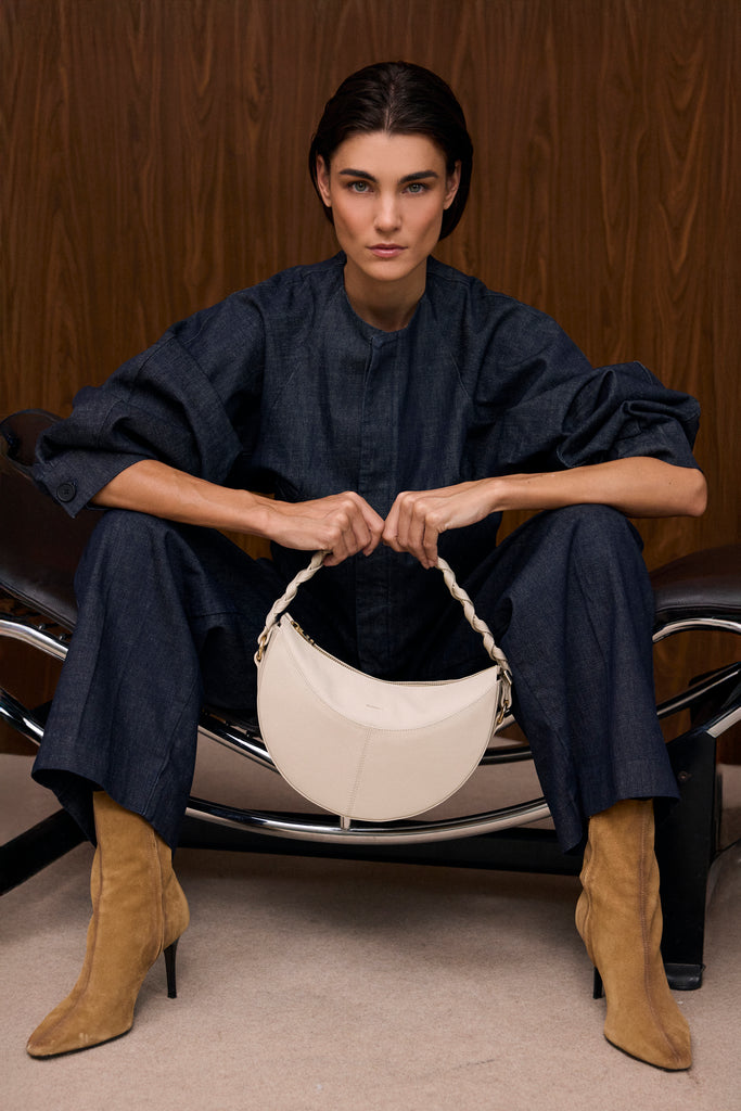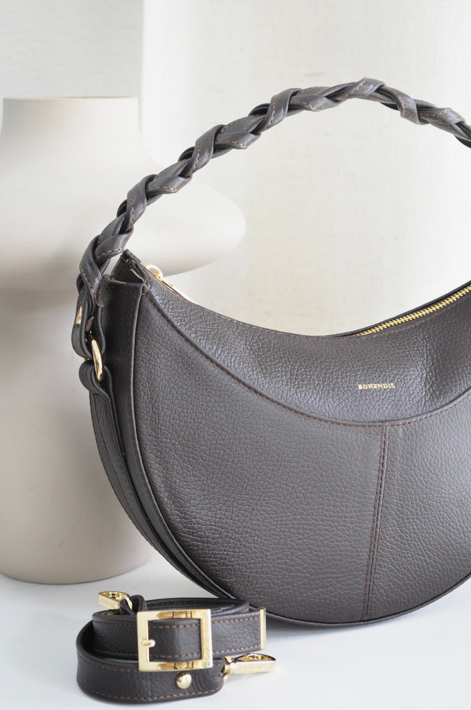 Η Sophie είναι η τσάντα που συνδυάζει μοναδικότητα και κομψότητα. Με ιδιαίτερο σχήμα μισοφέγγαρου, μπορεί να φορεθεί τόσο ως cross body όσο και ως shoulder bag ενώ το ξεχωριστό πλεκτό δερμάτινο χερούλι της αναδεικνύει κάθε εμφάνιση με στυλ
