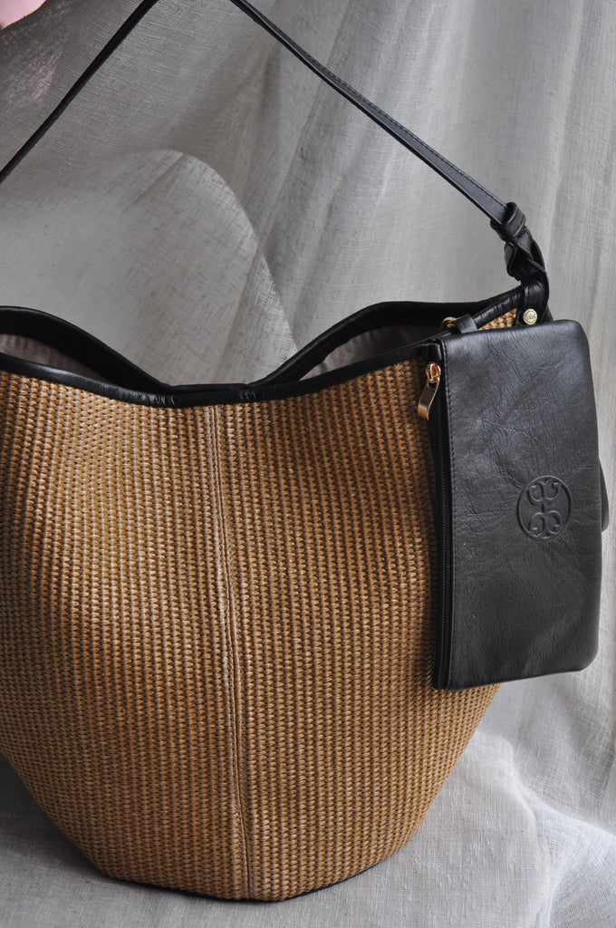 Helena Ψάθινη Τσάντα Ώμου - Black