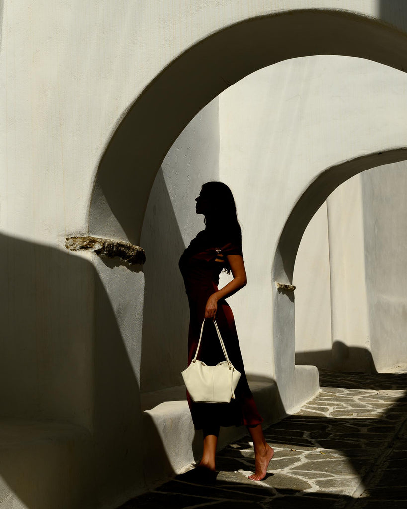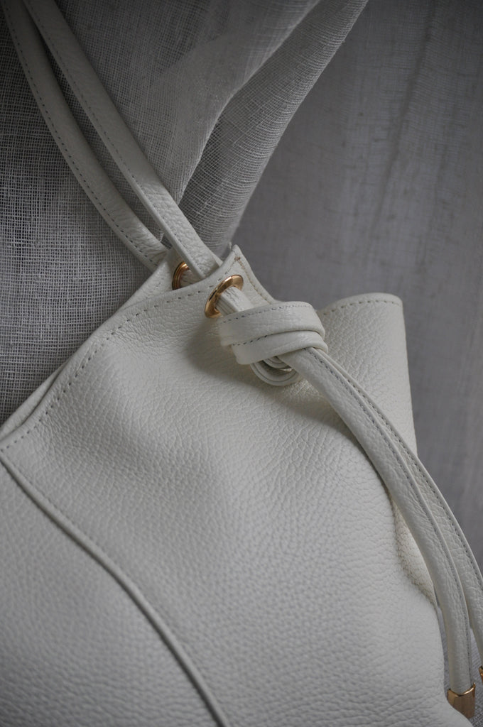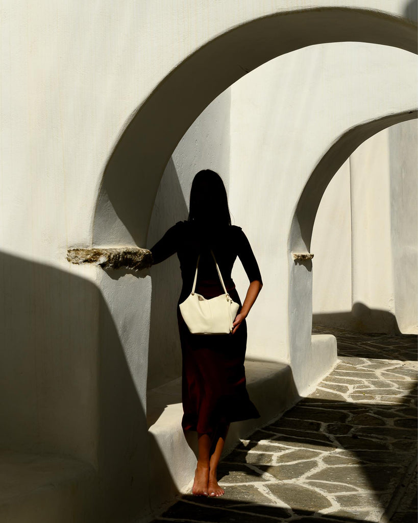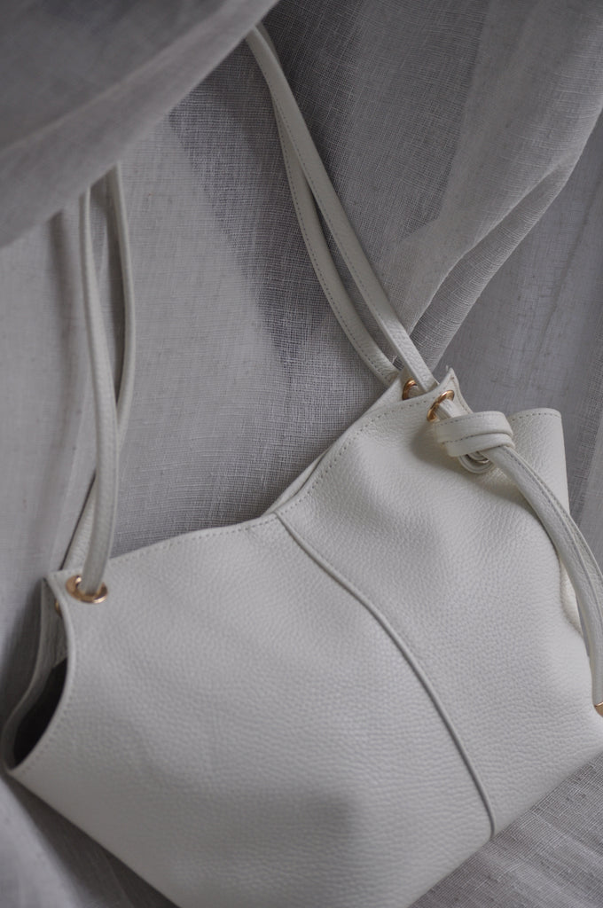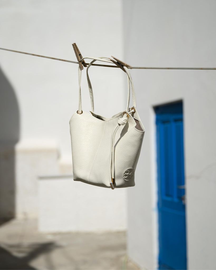 Helena Mini Δερμάτινη Τσάντα Ώμου - Cream
