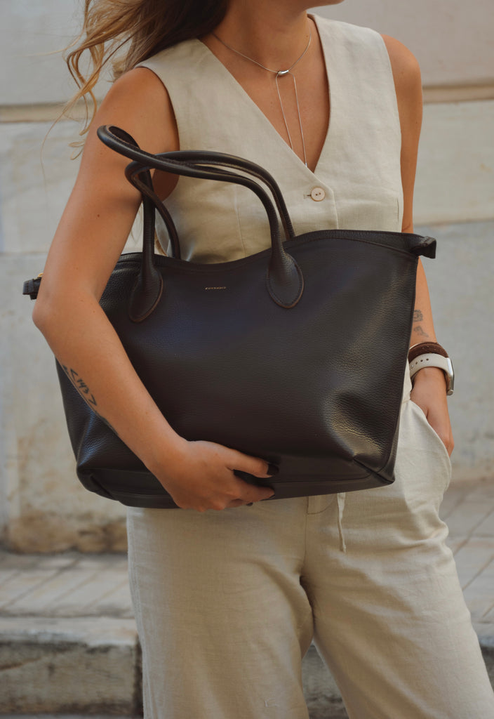 Η δερμάτινη τσάντα ώμου Bonendis είναι ένα statement κομμάτι φτιαγμένο για να ξεχωρίζει. Αυτή η όμορφη δερμάτινη τσάντα ώμου διαθέτει μια εντυπωσιακή αγκράφα και η μεταλλική αλυσίδα μπορεί να τη μετατρέψει σε τσάντα χειρός.