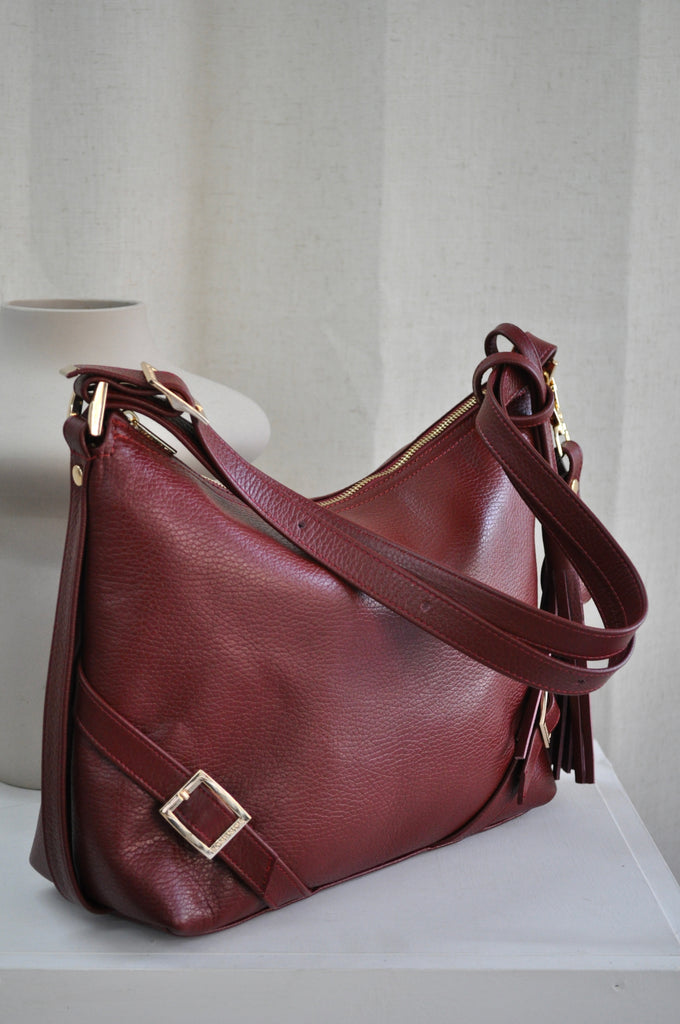 Bonendis x SKG Δερμάτινη Τσάντα Ώμου - Cherry Red