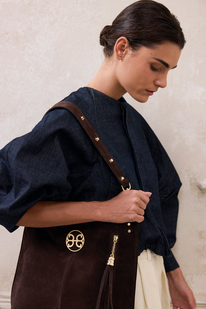 Chevie Δερμάτινη Τσάντα ώμου - Chocolate Suede