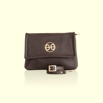Clelia Large Δερμάτινη Τσάντα Ώμου - Dark Brown