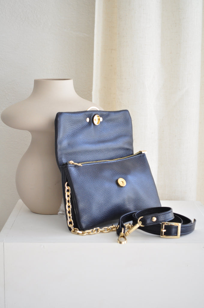 Clelia Mini Δερμάτινη Τσάντα Ώμου - Dark Blue