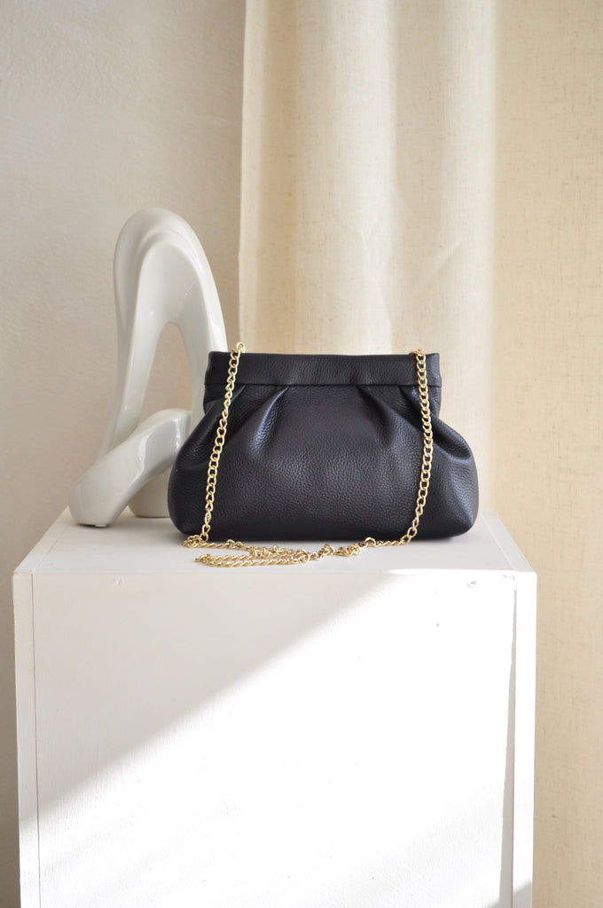 Σας παρουσιάζουμε το Kiss Pouch - ένα κομψό και εκλεπτυσμένο αξεσουάρ που έχει σχεδιαστεί για να συμπληρώνει την επίσημη ενδυμασία σας με διακριτική κομψότητα. Φορέστε το με αυτοπεποίθηση, είτε στο χέρι ως μινιμαλιστικό συμπλέκτη είτε κάτω από τη μασχάλη σας για μια πιο στιλάτη εμφάνιση. Αναβαθμίστε την επίσημη εμφάνισή σας με ένα αξεσουάρ που συνδυάζει αβίαστα την πρακτικότητα με την εκλεπτυσμένη αισθητική.