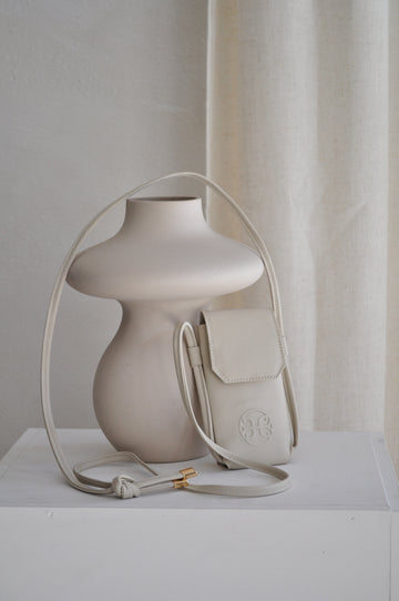 Μια κομψή δερμάτινη τσάντα τηλεφώνου, εκλεπτυσμένη με λουράκι με κόμπους και χρυσές λεπτομέρειες. Μια διακριτική πίσω τσέπη προσθέτει λειτουργικότητα στην κομψή της μορφή - ένα μικρό κομμάτι με διαχρονική ισορροπία.