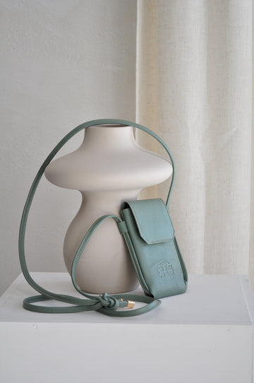 Μια κομψή δερμάτινη τσάντα τηλεφώνου, εκλεπτυσμένη με λουράκι με κόμπους και χρυσές λεπτομέρειες. Μια διακριτική πίσω τσέπη προσθέτει λειτουργικότητα στην κομψή της μορφή - ένα μικρό κομμάτι με διαχρονική ισορροπία.